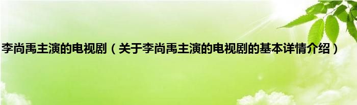 本文关于李尚禹主演的电视剧的基本详情介绍就讲解完毕,希望对大家有所帮助。