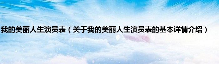 本文关于我的美丽人生演员表的基本详情介绍就讲解完毕,希望对大家有所帮助。