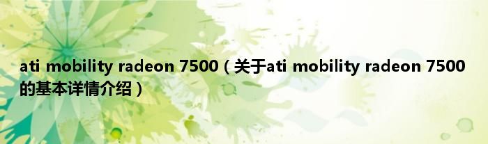 ati mobility radeon 7500(关于ati mobility radeon 7500的基本详情介绍)