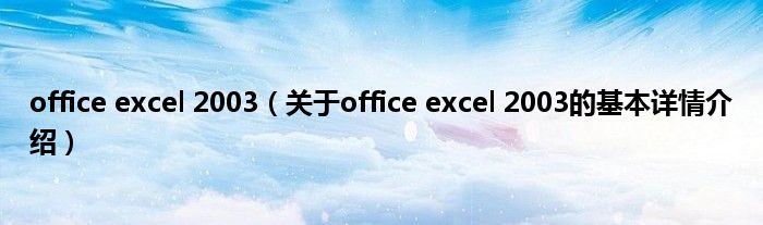 本文关于office excel 2003的基本详情介绍就讲解完毕,希望对大家有所帮助。