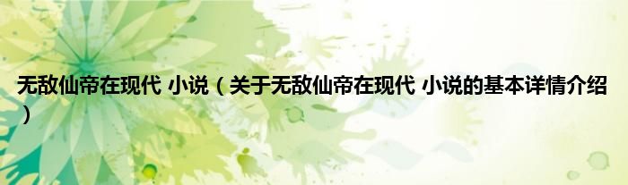 本文关于无敌仙帝在现代 小说的基本详情介绍就讲解完毕,希望对大家有所帮助。