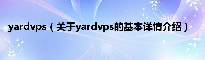 本文关于yardvps的基本详情介绍就讲解完毕,希望对大家有所帮助。