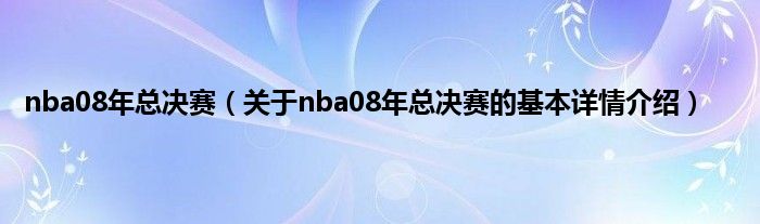 本文关于nba08年总决赛的基本详情介绍就讲解完毕,希望对大家有所帮助。