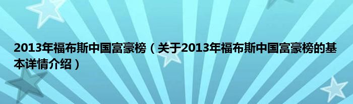 2013年福布斯中国富豪榜(关于2013年福布斯中国富豪榜的基本详情介绍)