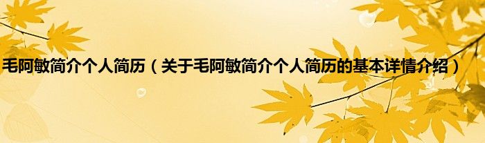 本文关于毛阿敏简介个人简历的基本详情介绍就讲解完毕,希望对大家有所帮助。