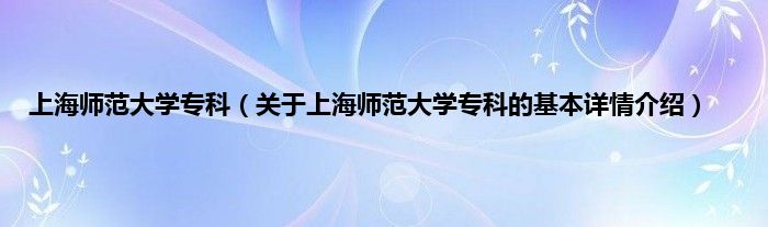 本文关于上海师范大学专科的基本详情介绍就讲解完毕,希望对大家有所帮助。
