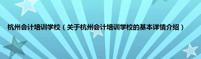 本文关于杭州会计培训学校的基本详情介绍就讲解完毕,希望对大家有所帮助。