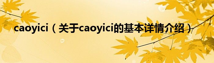 本文关于caoyici的基本详情介绍就讲解完毕,希望对大家有所帮助。