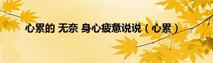 大家好,小问来为大家解答以上问题。心累的 无奈 身心疲惫说说,心累这个很多人还不知道,现在让我们一起来看看吧!
