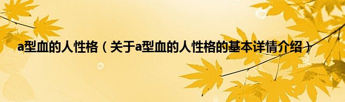 本文关于a型血的人性格的基本详情介绍就讲解完毕,希望对大家有所帮助。