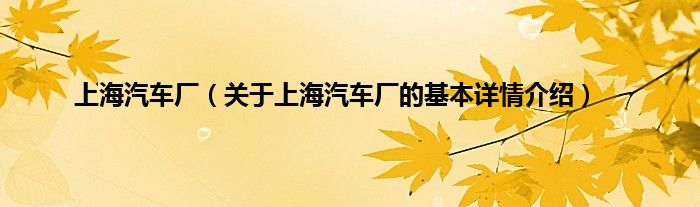 本文关于上海汽车厂的基本详情介绍就讲解完毕,希望对大家有所帮助。