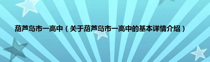 本文关于葫芦岛市一高中的基本详情介绍就讲解完毕,希望对大家有所帮助。