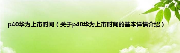 本文关于p40华为上市时间的基本详情介绍就讲解完毕,希望对大家有所帮助。