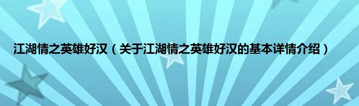 本文关于江湖情之英雄好汉的基本详情介绍就讲解完毕,希望对大家有所帮助。