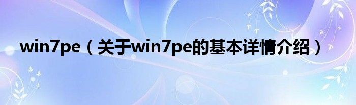 本文关于win7pe的基本详情介绍就讲解完毕,希望对大家有所帮助。