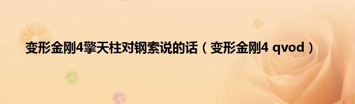 大家好,小问来为大家解答以上问题。变形金刚4擎天柱对钢索说的话,变形金刚4 qvod这个很多人还不知道,现在让我们一起来看看吧!