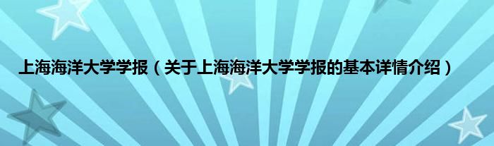 本文关于上海海洋大学学报的基本详情介绍就讲解完毕,希望对大家有所帮助。