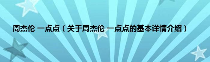 本文关于周杰伦 一点点的基本详情介绍就讲解完毕,希望对大家有所帮助。
