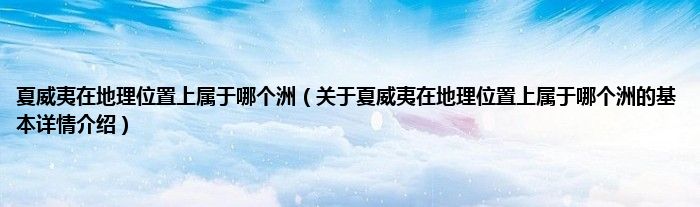 本文关于夏威夷在地理位置上属于哪个洲的基本详情介绍就讲解完毕,希望对大家有所帮助。