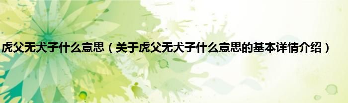 本文关于虎父无犬子什么意思的基本详情介绍就讲解完毕,希望对大家有所帮助。