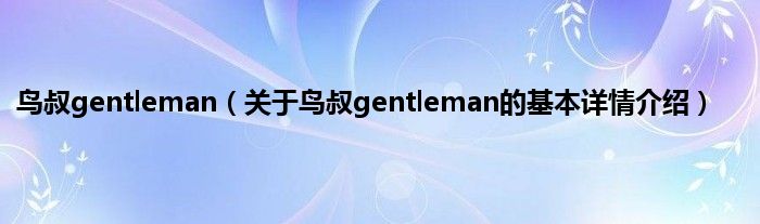 本文关于鸟叔gentleman的基本详情介绍就讲解完毕,希望对大家有所帮助。