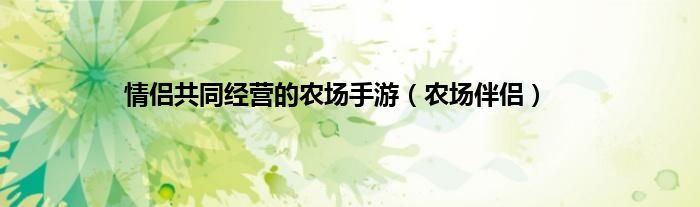 大家好,小问来为大家解答以上问题。情侣共同经营的农场手游,农场伴侣这个很多人还不知道,现在让我们一起来看看吧!