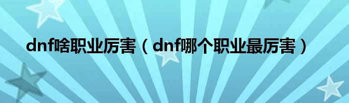 以上就是【dnf啥职业厉害,dnf哪个职业最厉害】相关内容。
