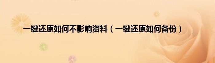大家好,小问来为大家解答以上问题。一键还原如何不影响资料,一键还原如何备份这个很多人还不知道,现在让我们一起来看看吧!