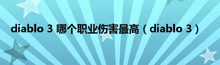大家好,小问来为大家解答以上问题。diablo 3 哪个职业伤害最高,diablo 3这个很多人还不知道,现在让我们一起来看看吧!