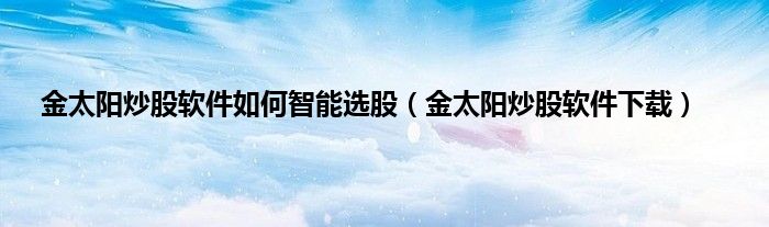 大家好,小问来为大家解答以上问题。金太阳炒股软件如何智能选股,金太阳炒股软件下载这个很多人还不知道,现在让我们一起来看看吧!