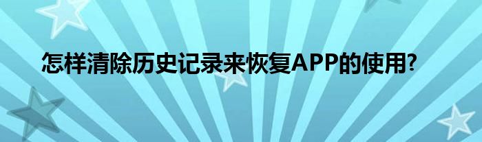 以上就是【怎样清除历史记录来恢复APP的使用?】相关内容。