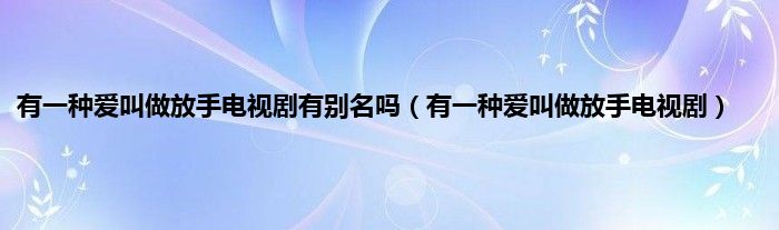 大家好,小问来为大家解答以上问题。有一种爱叫做放手电视剧有别名吗,有一种爱叫做放手电视剧这个很多人还不知道,现在让我们一起来看看吧!