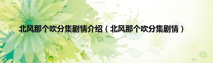 大家好,小问来为大家解答以上问题。北风那个吹分集剧情介绍,北风那个吹分集剧情这个很多人还不知道,现在让我们一起来看看吧!