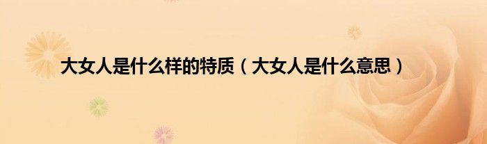 大家好,小问来为大家解答以上问题。大女人是什么样的特质,大女人是什么意思这个很多人还不知道,现在让我们一起来看看吧!