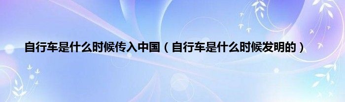 以上就是【自行车是什么时候传入中国,自行车是什么时候发明的】相关内容。