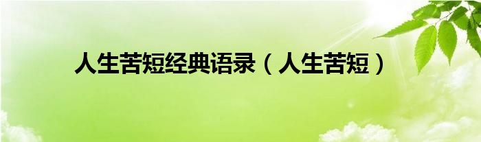 以上就是【人生苦短经典语录,人生苦短】相关内容。