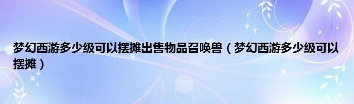 大家好,小问来为大家解答以上问题。梦幻西游多少级可以摆摊出售物品召唤兽,梦幻西游多少级可以摆摊这个很多人还不知道,现在让我们一起来看看吧!