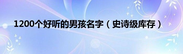 大家好,综合小编来为大家讲解下。1200个好听的男孩名字,史诗级库存这个很多人还不知道,现在让我们一起来看看吧!