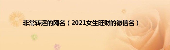 本文非常转运的网名,2021女生旺财的微信名到此分享完毕,希望对大家有所帮助。