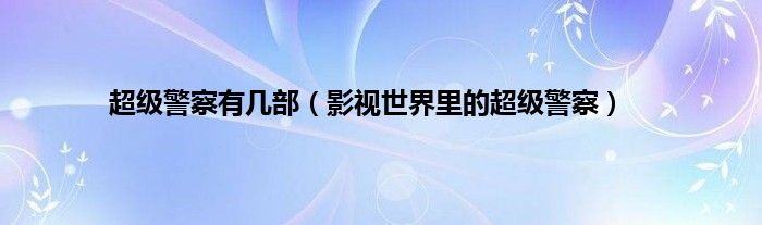 以上就是【超级警察有几部,影视世界里的超级警察】相关内容。