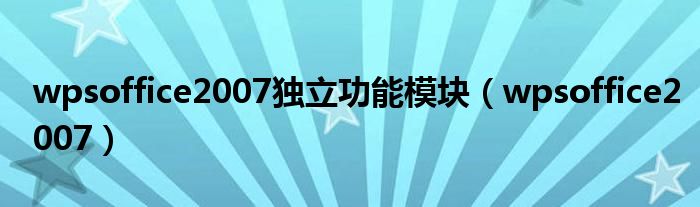 大家好,小问来为大家解答以上问题。wpsoffice2007独立功能模块,wpsoffice2007这个很多人还不知道,现在让我们一起来看看吧!