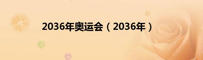 大家好,小问来为大家解答以上问题。2036年奥运会,2036年这个很多人还不知道,现在让我们一起来看看吧!