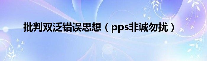 大家好,小问来为大家解答以上问题。批判双泛错误思想,pps非诚勿扰这个很多人还不知道,现在让我们一起来看看吧!