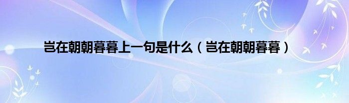 大家好,小问来为大家解答以上问题。岂在朝朝暮暮上一句是什么,岂在朝朝暮暮这个很多人还不知道,现在让我们一起来看看吧!