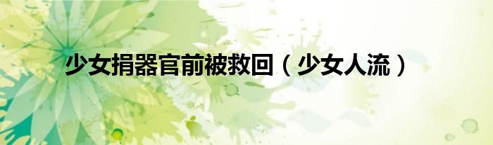 大家好,小问来为大家解答以上问题。少女捐器官前被救回,少女人流这个很多人还不知道,现在让我们一起来看看吧!
