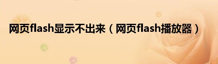 以上就是【网页flash显示不出来,网页flash播放器】相关内容。