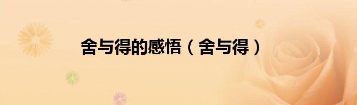 大家好,小问来为大家解答以上问题。舍与得的感悟,舍与得这个很多人还不知道,现在让我们一起来看看吧!