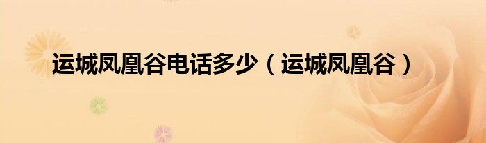 大家好,小问来为大家解答以上问题。运城凤凰谷电话多少,运城凤凰谷这个很多人还不知道,现在让我们一起来看看吧!