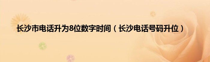 大家好,小问来为大家解答以上问题。长沙市电话升为8位数字时间,长沙电话号码升位这个很多人还不知道,现在让我们一起来看看吧!