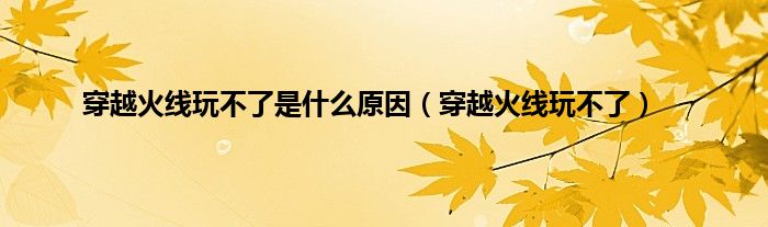 以上就是【穿越火线玩不了是什么原因,穿越火线玩不了】相关内容。